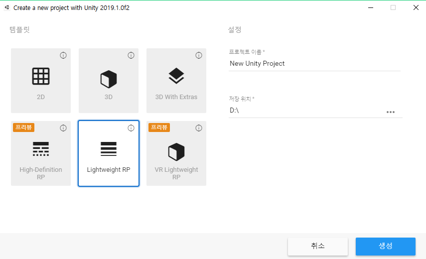처음에 프로젝트를 만들면서, LWRP 프로젝트로 만들었다.