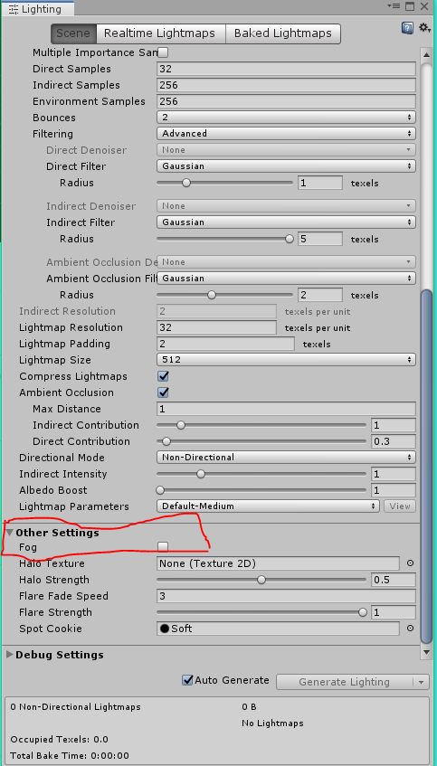 Window -> Rendering -> Lighting Settings 에서 제일 밑에 Fog 체크 해제를 하면 선명하게 돌아온다.