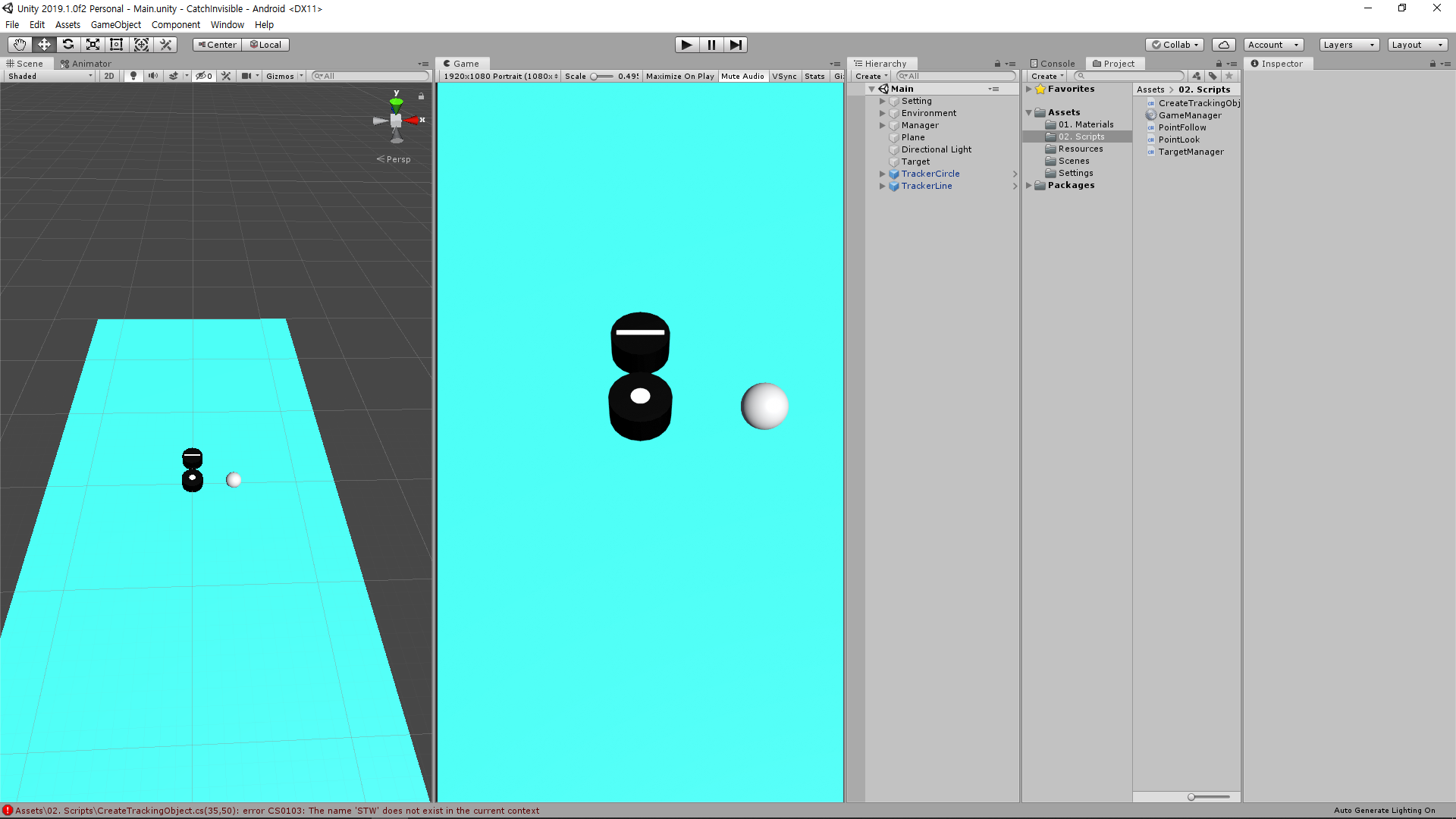처음에 만들어져있는 Scene을 삭제하고 게임을 제작했는데, Game 뷰가 너무 희미했다.