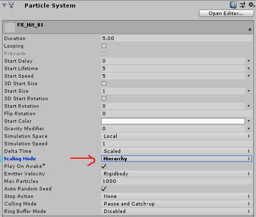 1. Particle System 컴포넌트 -> MainModule에 있는 Scaling Mode -> Local에서 Hierarchy로 바꾼다.