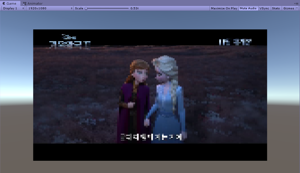 영상에 모자이크 효과가 생겼다.