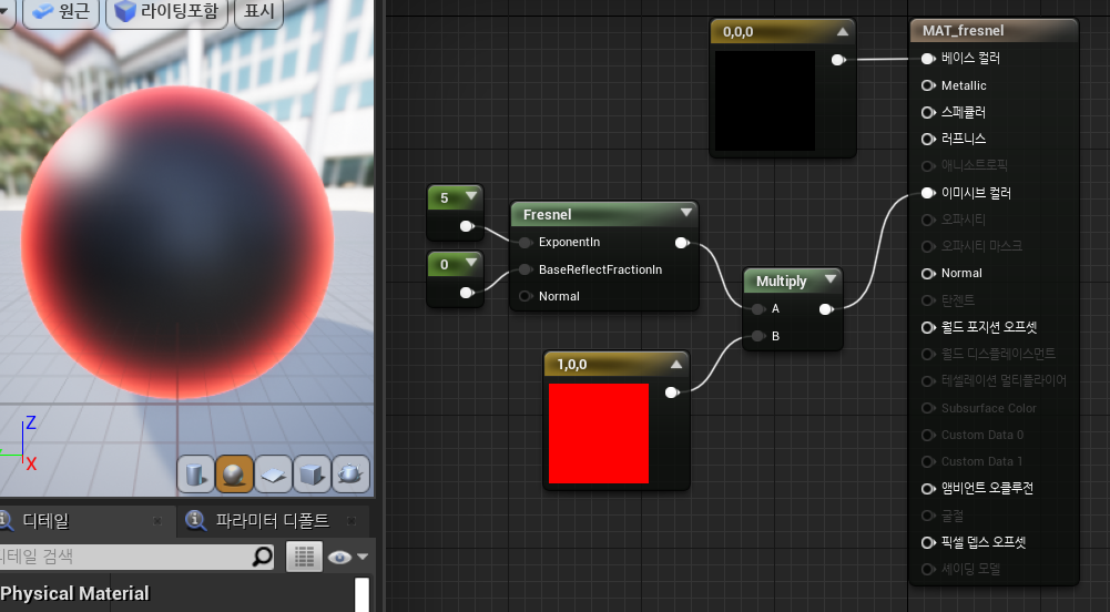 Fresnel 머티리얼 노드 사용법 안내입니다.