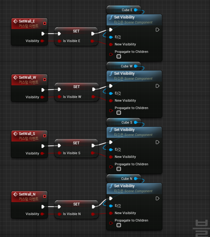 여기에는 벽을 안보이게 하는 커스텀 이벤트도 구현하자. (나는 동서남북으로 구분했다.)