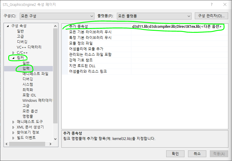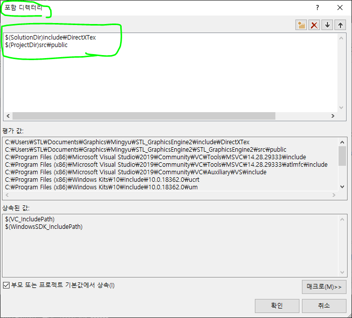 헤더파일 경로는 포함 디렉터리에 설정하고,