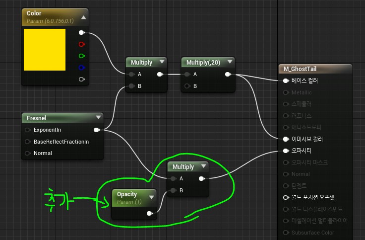 7. 일정 시간 있다가 사라져야하므로, 머터리얼에 Opacity를 제어할 파라미터를 만든다.