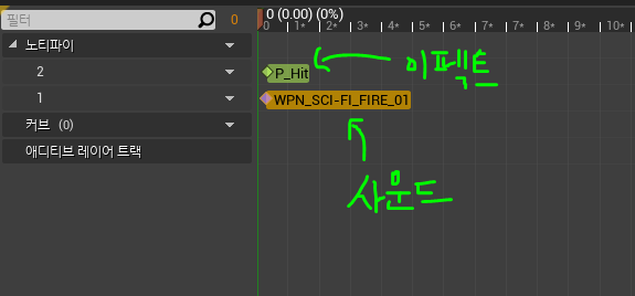왼쪽의 P_Hit, WPN_SCI 노티파이는 내가 미리 만들어놨던 것이다. 오해 NO.