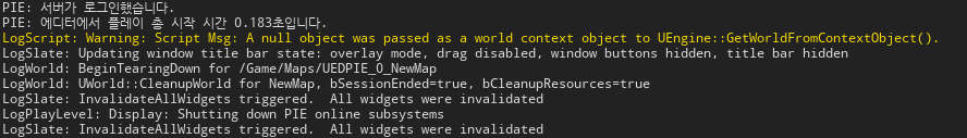 에러 메세지를 읽어보니 GetWorld()가 Null 값을 반환하나보다.