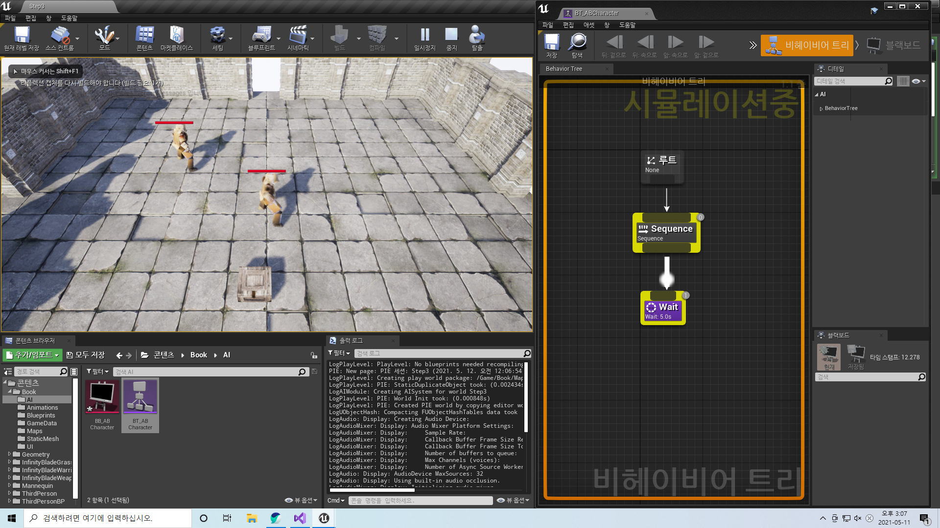플레이(Alt + P)를 누르면, Behavior Tree가 동작하는 것을 볼 수 있다.