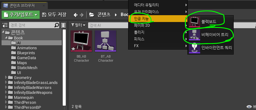 컨텐츠 브라우저에서 우클릭해서 생성하면 된다.