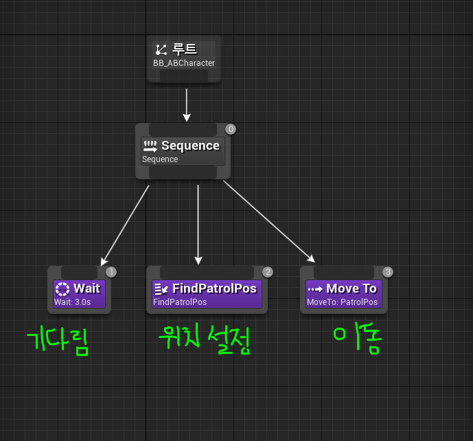 (BTTask Find Patrol Pos 1)이라고 뜨는 것은 언리얼을 껏다 키면 사라진다. 일종의 버그인 것 같다.