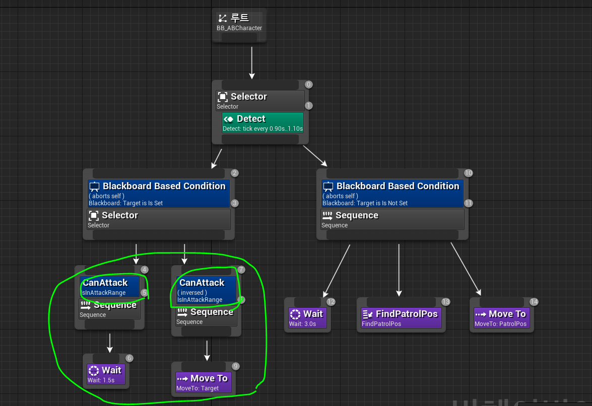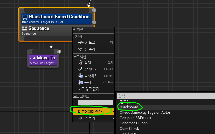 데코레이터 노드 중에서 만들어져있는 Blackboard 노드를 통해 조건문을 쉽게 만들 수 있다.