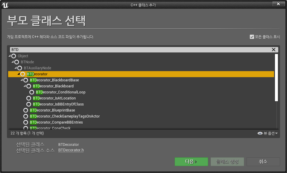 클래스명은 BTDecorator_IsInAttackRange로 했다.