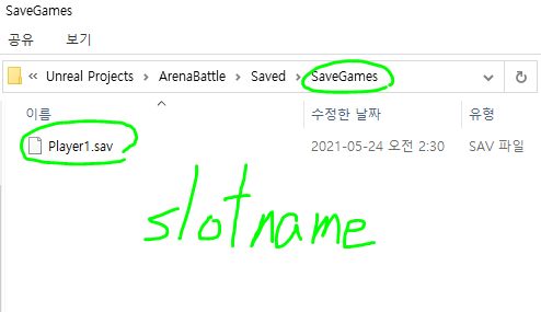 지정했던 SlotName으로 파일명이 만들어져있다.