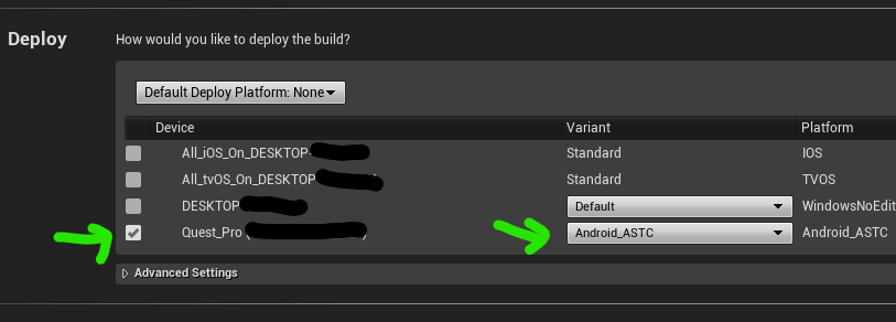 Cooked Platforms : 안드로이드로 할 거라서 Android_ASTC에 체크.