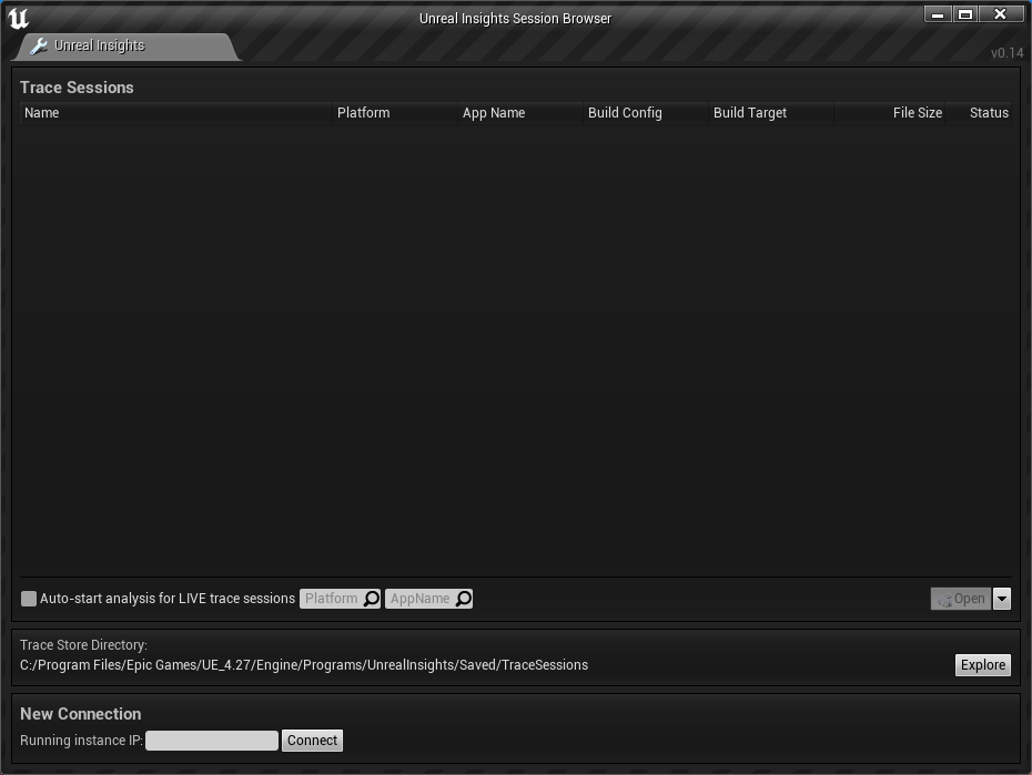 언리얼 인사이트를 실행시킨 상태에서 Standalone Game으로 실행시켜주면 자동으로 연결된다.